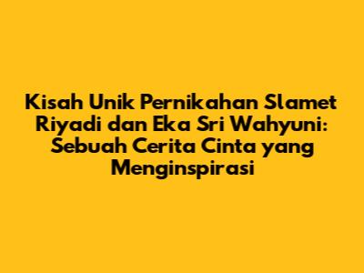 Pernikahan Slamet Riyadi dan Eka Sri Wahyuni adalah sebuah kisah cinta yang unik dan menarik perhatian publik. Perjalanan cinta mereka, yang diwarnai oleh berbagai rintangan dan perbedaan, berhasil membuktikan bahwa cinta sejati mampu mengatasi segala halangan. Dalam artikel ini, kita akan menyelami lebih dalam kisah cinta mereka, mulai dari awal pertemuan hingga perjalanan pernikahan mereka yang penuh warna. Mari kita simak bersama bagaimana pernikahan Slamet Riyadi dan Eka Sri Wahyuni menjadi inspirasi bagi banyak orang.