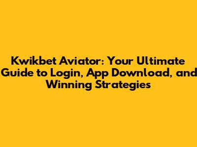 Kwikbet Aviator: Login, App Download, & Winning Strategies
