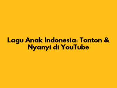 Lagu Anak Indonesia: Tonton & Nyanyi Di YouTube