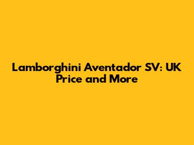 Lamborghini Aventador SV: UK Price And More