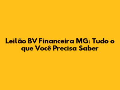 Leilão BV Financeira MG: Guia Completo E Dicas Essenciais