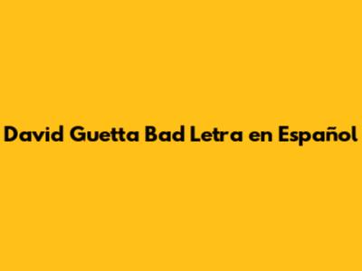 Letra De David Guetta 'Bad' En Español