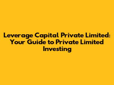 Hey guys! Ever heard of Leverage Capital Private Limited and wondered what they're all about? Or maybe you're thinking about diving into the world of private limited investing? Well, you've come to the right place! This article is going to break down everything you need to know in a way that's easy to understand, even if you're not a financial whiz. We'll cover what Leverage Capital does, the ins and outs of private limited companies, and how you can potentially get involved. So, buckle up and let's get started!