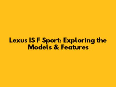 Lexus IS F Sport: Exploring The Models & Features