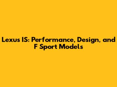 Lexus IS: Performance, Design, And F Sport Models