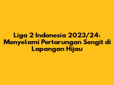 Liga 2 Indonesia 2023/24 adalah kompetisi yang sangat dinantikan oleh para pecinta sepak bola di seluruh Indonesia. Dengan memahami klasemen, jadwal, dan informasi lengkap lainnya, kita bisa menikmati jalannya kompetisi dengan lebih baik. Mari kita dukung sepak bola Indonesia agar terus berkembang dan menghasilkan pemain-pemain berkualitas. Jangan lupa untuk terus mengikuti perkembangan Liga 2 Indonesia 2023/24 dan memberikan dukungan kepada tim kesayanganmu! Semangat terus untuk sepak bola Indonesia!