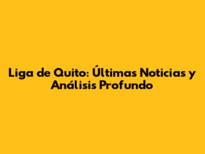 Liga De Quito: Últimas Noticias Y Análisis Profundo