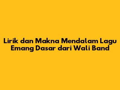 Wali Band, sebagai grup musik yang dikenal dengan ciri khasnya yang religius dan humoris, telah merilis lagu Emang Dasar sebagai salah satu single andalan mereka. Lagu ini menjadi sangat populer karena beberapa alasan utama. Pertama, melodi yang mudah diingat dan membuat pendengar ingin ikut bernyanyi. Kedua, lirik yang ditulis dengan bahasa sehari-hari, sehingga mudah dipahami dan diterima oleh berbagai kalangan. Ketiga, tema yang diangkat dalam lagu ini sangat dekat dengan kehidupan sehari-hari, yaitu tentang dinamika hubungan cinta dan problematika yang seringkali terjadi.