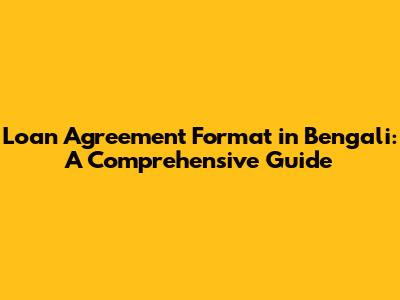 Loan Agreement Format In Bengali: A Comprehensive Guide