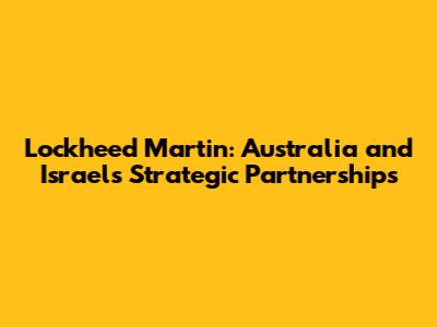 Lockheed Martin: Australia And Israel's Strategic Partnerships