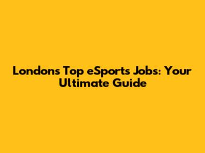 London's Top ESports Jobs: Your Ultimate Guide
