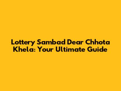 Lottery Sambad Dear Chhota Khela: Your Guide