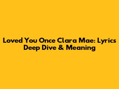 Loved You Once Clara Mae: Lyrics Deep Dive & Meaning