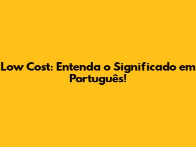 Low Cost: Entenda O Significado Em Português!