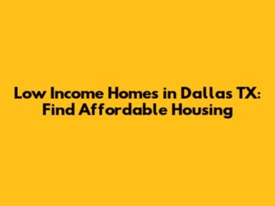 Low Income Homes In Dallas TX: Find Affordable Housing