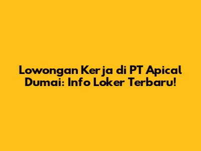 Lowongan Kerja PT Apical Dumai: Info Loker Terbaru!