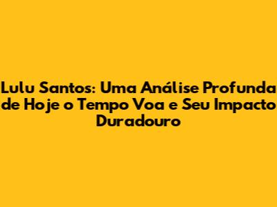 Lulu Santos, com sua genialidade e talento, nos presenteou com essa obra-prima. A música continua a emocionar e inspirar pessoas de todas as idades e origens, provando seu impacto duradouro. "Hoje o Tempo Voa" é um clássico da música brasileira e um exemplo de como a arte pode tocar o coração das pessoas e deixar um legado eterno.
