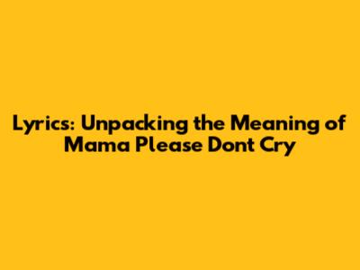 Lyrics: Unpacking The Meaning Of 'Mama Please Don't Cry'