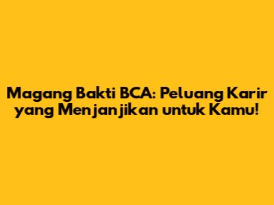 Magang Bakti BCA – terdengar familiar, kan? Buat kalian yang sedang mencari pengalaman kerja, khususnya di dunia perbankan, program magang ini bisa jadi gerbang yang tepat! Tapi, apa sih sebenarnya Magang Bakti BCA itu? Jangan khawatir, guys, kita bedah tuntas di artikel ini. Kita akan bahas mulai dari pengertian, persyaratan, keuntungan, hingga tips sukses agar kamu bisa lolos seleksi. Jadi, simak terus ya!