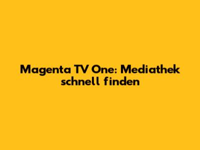 Magenta TV One: Mediathek Schnell Finden
