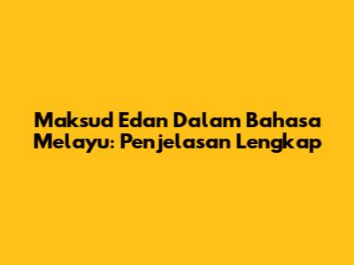 Maksud Edan Dalam Bahasa Melayu: Penjelasan Lengkap