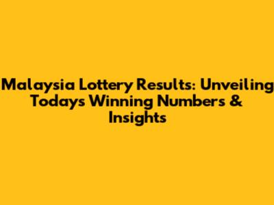 Malaysia Lottery Results: Today's Winning Numbers & Insights