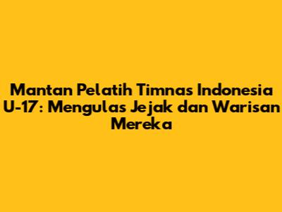 Mantan pelatih Timnas Indonesia U-17 memainkan peran yang sangat penting dalam perkembangan sepak bola Indonesia. Mereka telah memberikan kontribusi yang besar terhadap pembinaan pemain muda, meningkatkan kualitas sepak bola, dan memberikan inspirasi bagi generasi muda. Jejak langkah mereka patut kita apresiasi, dan warisan mereka akan terus dikenang. Mereka adalah pahlawan sepak bola yang berjuang di balik layar, dan peran mereka sangat penting dalam membentuk masa depan sepak bola Indonesia. Mari kita dukung mereka, agar dapat terus memberikan kontribusi yang terbaik bagi kemajuan sepak bola tanah air.