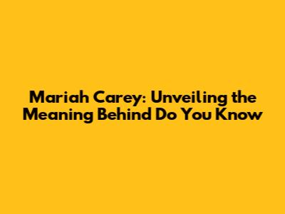 Mariah Carey: Unveiling The Meaning Behind 'Do You Know'