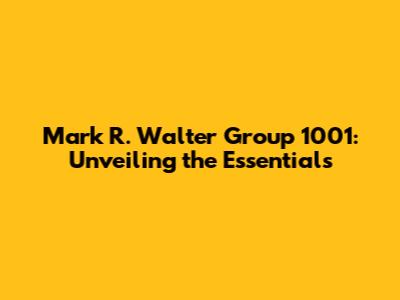 Mark R. Walter Group 1001: What You Need To Know