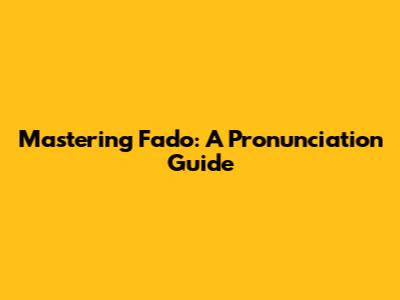 Mastering Fado: A Pronunciation Guide