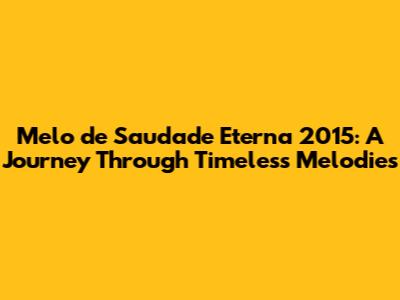 Melo De Saudade Eterna 2015: A Journey Through Timeless Melodies