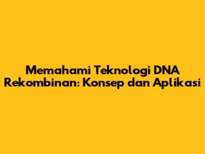 Memahami Teknologi DNA Rekombinan: Konsep Dan Aplikasi
