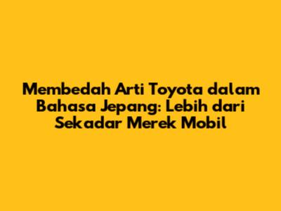 Semoga artikel ini memberikan wawasan baru tentang arti Toyota dalam bahasa Jepang. Jangan ragu untuk berbagi artikel ini dengan teman-teman kalian. Sampai jumpa di artikel menarik lainnya, guys!