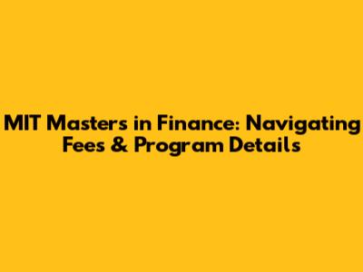 MIT Master's In Finance: Costs & Program Insights
