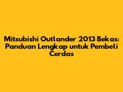 Mitsubishi Outlander 2013 bekas adalah pilihan yang menarik bagi mereka yang mencari SUV keluarga yang andal dan serbaguna. Dengan mempertimbangkan keunggulan, kekurangan, dan tips yang telah dibahas dalam artikel ini, Anda dapat membuat keputusan yang tepat saat membeli mobil bekas ini. Jangan lupa untuk melakukan pemeriksaan menyeluruh, test drive, dan negosiasi harga yang wajar. Semoga panduan ini membantu Anda dalam menemukan Mitsubishi Outlander 2013 bekas yang sesuai dengan kebutuhan dan anggaran Anda. Selamat berburu mobil bekas!