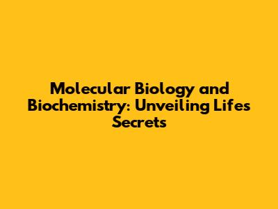 Molecular Biology And Biochemistry: Unveiling Life's Secrets