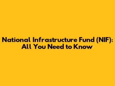 National Infrastructure Fund (NIF): All You Need To Know