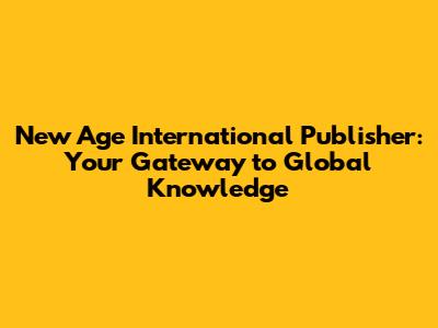 New Age International Publisher: A Guide To Global Knowledge