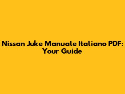 Hey guys! Are you looking for the Nissan Juke manuale italiano PDF? You've come to the right place. Whether you're a new owner or just need a quick reference, having the manual in Italian can be super helpful. In this article, we'll dive into why having a manual is essential, where to find it, and how to make the most of it. Let's get started!