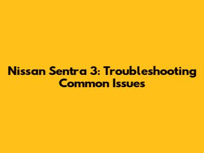 Nissan Sentra 3: Troubleshooting Common Issues