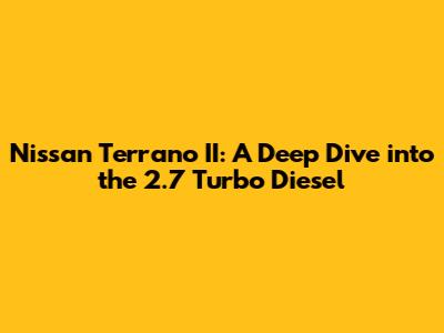 Let's get into the world of the Nissan Terrano II and explore the ins and outs of its iconic 2.7 turbo diesel engine. If you're a fan of off-road adventures, classic SUVs, or just appreciate robust engineering, you're in the right place. We will cover everything from its performance and reliability to common issues and maintenance tips. So, buckle up and let's dive in!