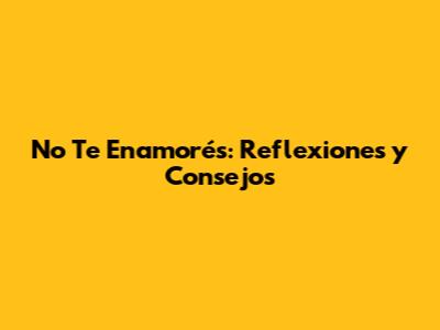 No Te Enamorés: Reflexiones Y Consejos