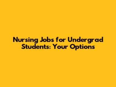 Nursing Jobs For Undergrad Students: Your Options