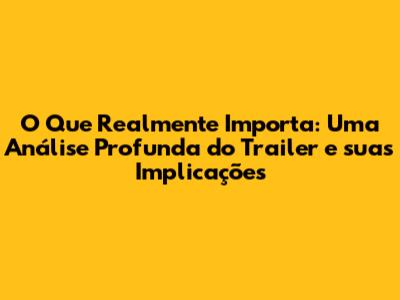O trailer de 'O Que Realmente Importa' não é apenas uma amostra da história, mas também uma obra de arte audiovisual. A forma como os elementos visuais e sonoros são combinados cria uma atmosfera que nos envolve e nos transporta para dentro do filme. A atenção aos detalhes na produção do trailer é evidente e contribui para a experiência geral.