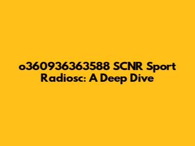 O360936363588 SCNR Sport Radiosc: A Deep Dive