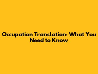Occupation Translation: What You Need To Know
