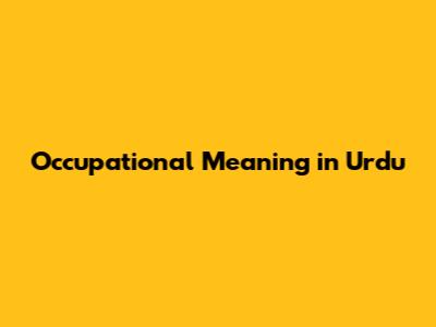 Occupational Meaning In Urdu