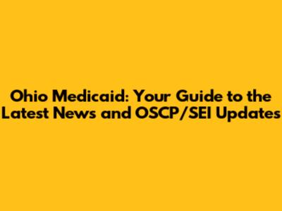 Ohio Medicaid: Latest News And OSCP/SEI Updates
