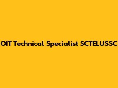 OIT Technical Specialist SCTELUSSC: Role And Responsibilities