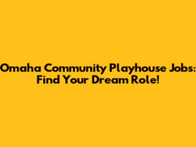 Omaha Community Playhouse Jobs: Find Your Dream Role!